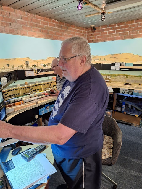 I was invited but it clashed with the airconditioner technician coming to service our three split systems and daignose a problem with the main unit. Don, Peter S, Ross & Rosslyn joined Chris. Don held a impromptu clinic on consisting using a Roco MultiMaus using CV19 consisting (same process for Lenz or Fleischmann).
